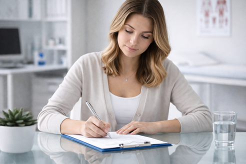 Sie bitte vor Ihrem Termin 10 Minuten zum Ausfüllen eines Anamnesebogens mit.